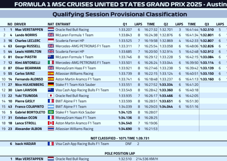 Verstappen da el primer golpe en Austin: Pole Sprint y acecha a los McLaren