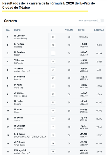 Fórmula E México: Cassidy da a Citroen su primer triunfo; enorme Martí, de último a 7º